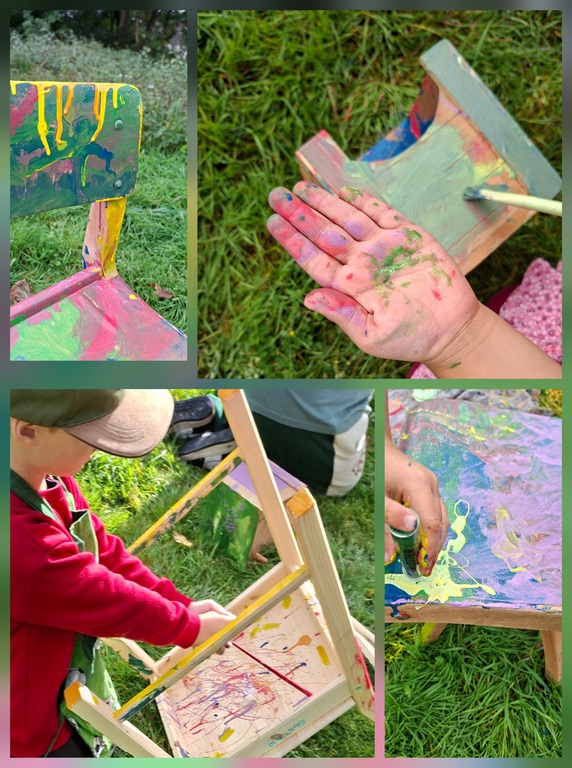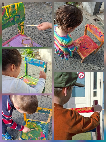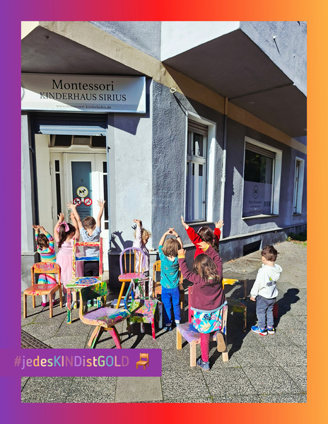 Am 06. Mai während des internationnalen Regenbogenfamilientag (IFED) malten die Kinder im Campus Kiezspindel, Berlin Köpenick den goldenen Regenbogenstuhl.