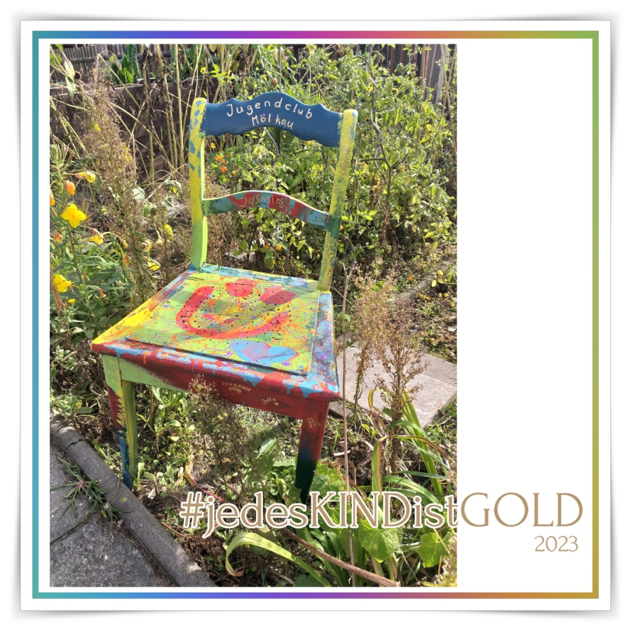 Jedes Jahr wird das Kunstprojekt "Goldener Regenbogenstuhl" von Kindern und gemeinsam mit ihnen realisiert. Das Projekt wurde im Jahr 2013 erstmals ins Leben gerufen. In Niedersachsen gestalteten Kinder alte Stühle mit den bunten Farben des Regenbogens. Jedes Kind hatte seinen oder ihren eigenen Stuhl, der ebenfalls in ihrem Besitz blieb.
